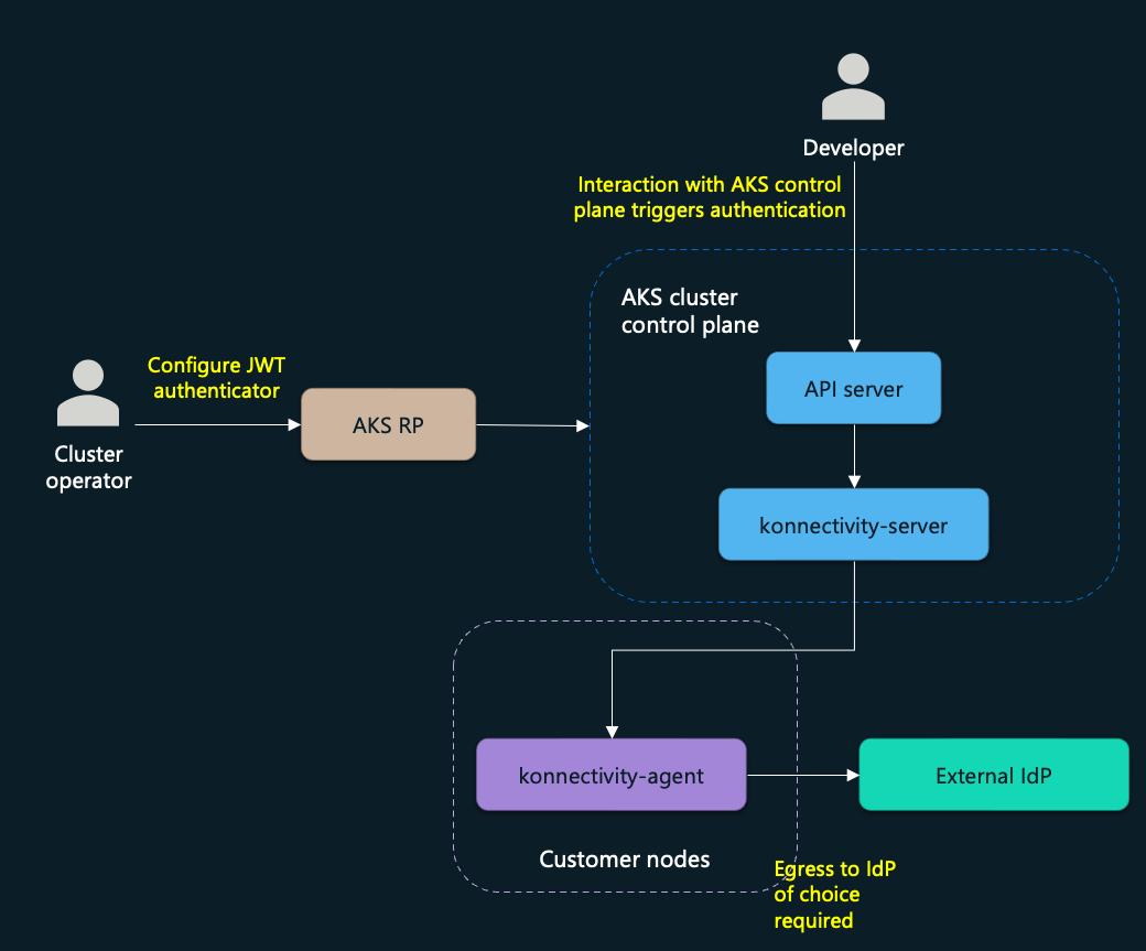 The feature is based on the Kubernetes structured authentication configuration, which moved to beta in Kubernetes 1.30. AKS implements this functionality through JSON Web Token (JWT) authenticators that validate tokens from external identity providers according to your configuration.