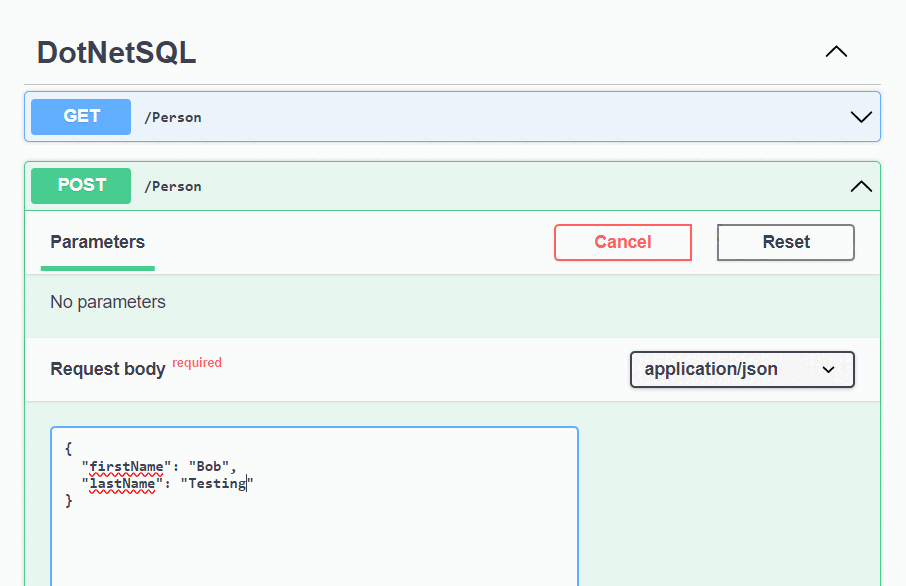 GETmethod on the Swagger UI page and select Try it. Select Execute, and the person you just created is returned.