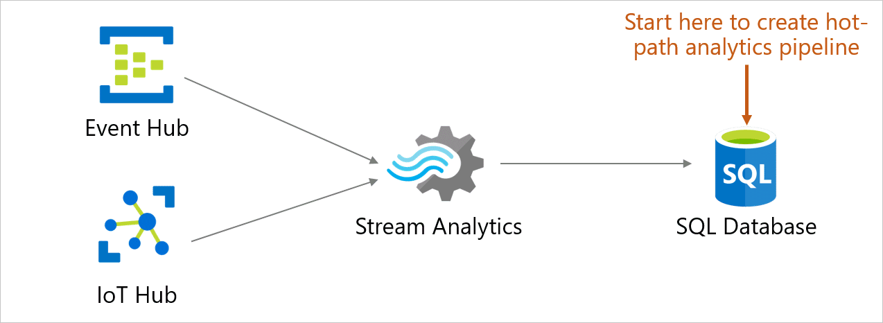 - Minimum context switching: You can start from a database in Azure SQL Database in the portal and start ingesting real-time data into a table without switching to any other service.