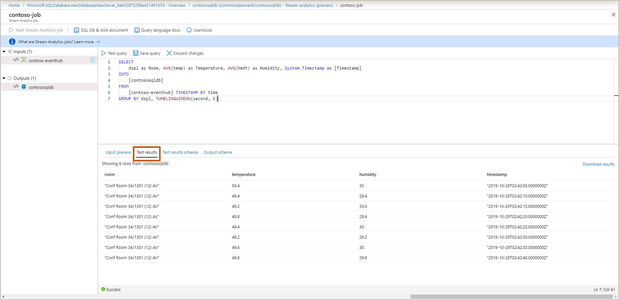 - Reduced number of steps: The context of your database and table is used to pre-configure a Stream Analytics job.