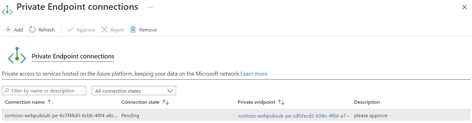 - Select the pending connection that you created in your Web PubSub resource.
