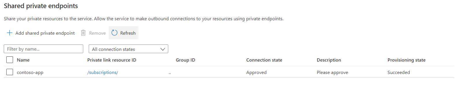 Select Add shared private endpoint.