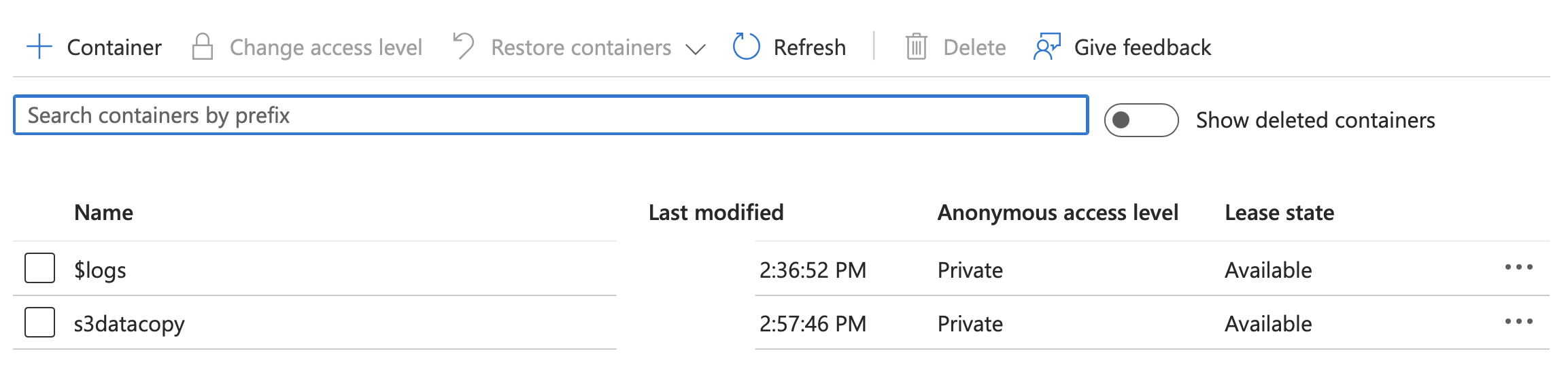 As the pipeline continues to run, you can monitor it. After it finishes successfully, check the list of containers in the Azure storage account that you created earlier.