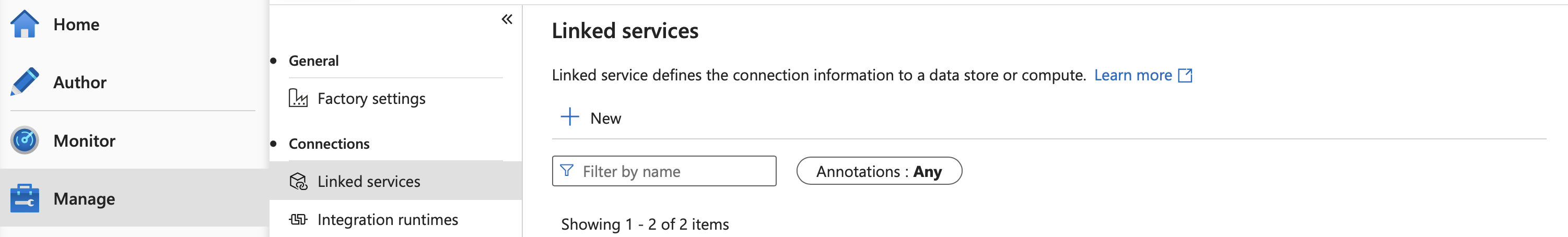 Create an Azure Data Lake Storage Gen2 linked service. Enter the details for the storage account that you created earlier.