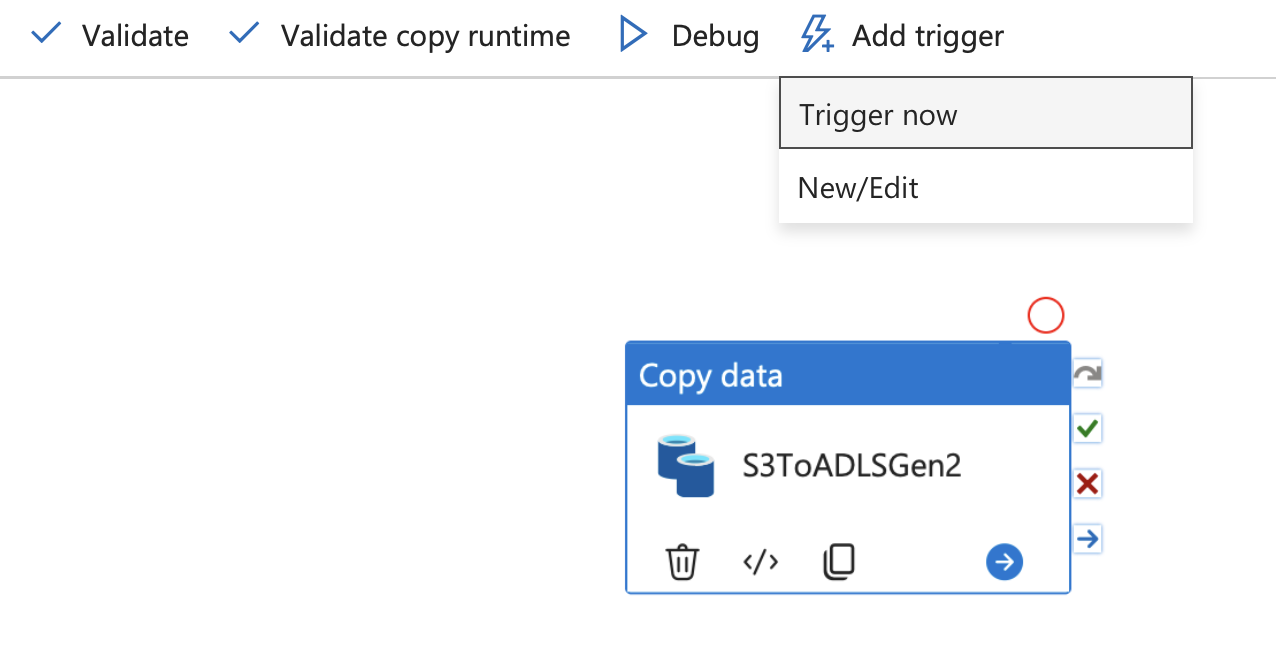 s3datacopyby default.After you finish making changes, select Publish all to publish the pipeline.