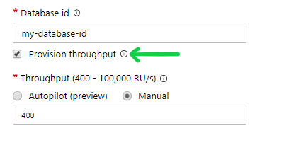 Storing all object models in a single Azure Cosmos DB collection: If you'd prefer to store all models in a single collection, you can just create a new database without selecting the Provision Throughput option. Using this capacity model will create each collection with its own throughput capacity for every object model.