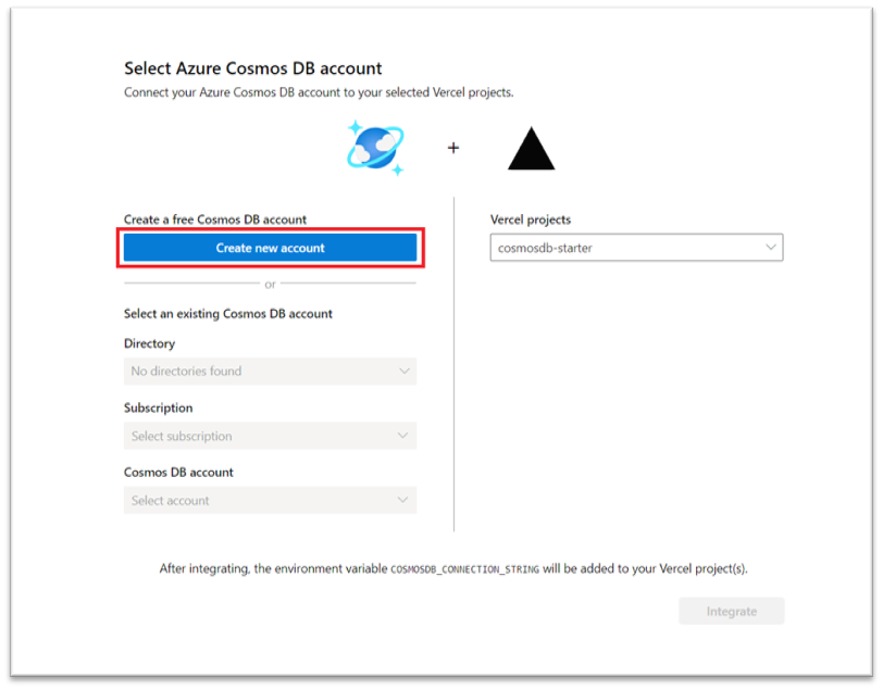 Integrate Cosmos DB with Vercel via Integration Marketplace