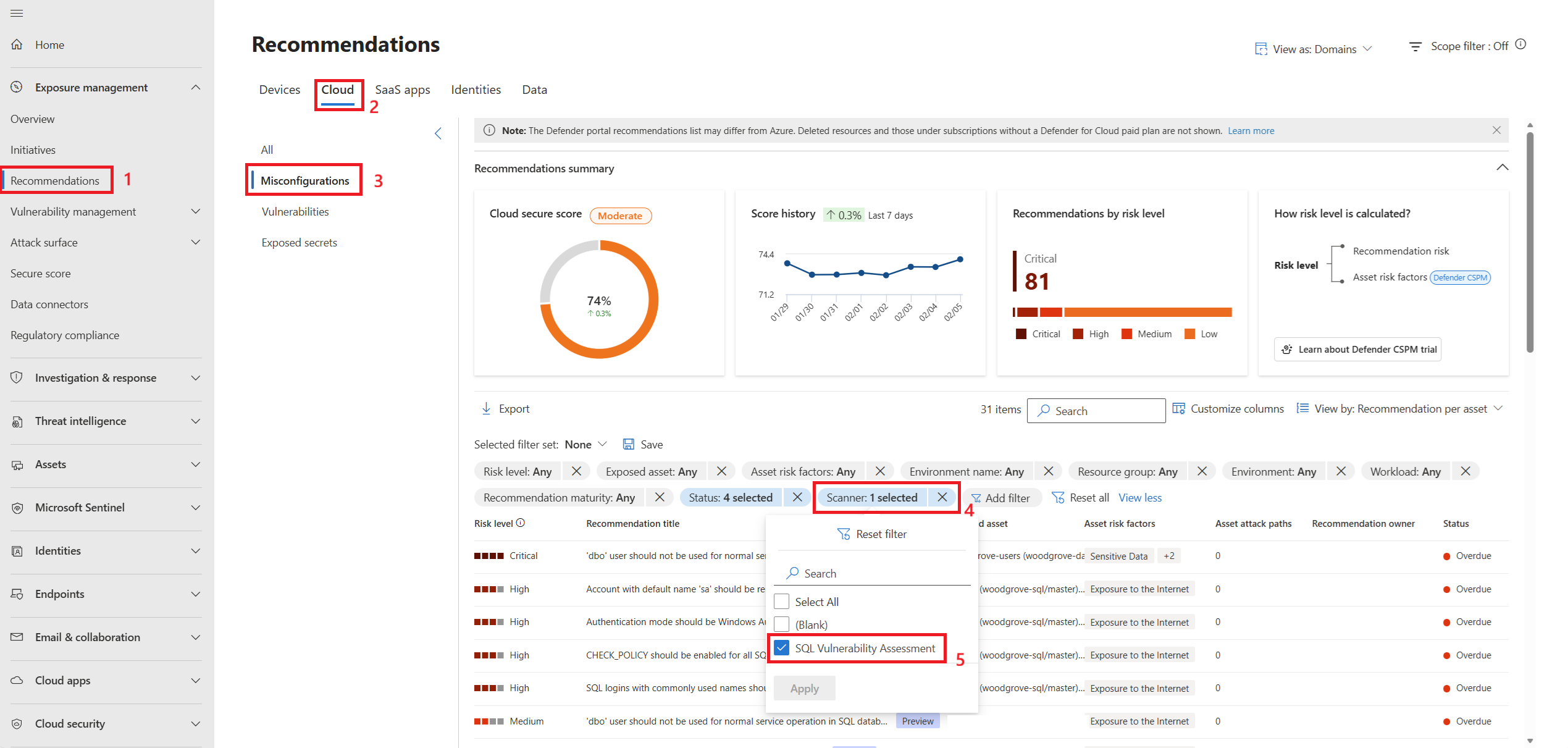 Select Exposure management > Recommendations.