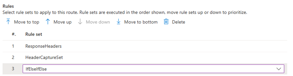 The Azure Front Door rules engine doesn't natively support traditional conditional logic with "if-elseif-else" structures. By default, all rules are independently evaluated as "if condition1 then action1", "if condition2 then action2", and so forth. When multiple conditions are met simultaneously, multiple corresponding actions are executed.