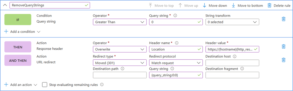 Scenario 11: Remove query strings from incoming URLs using URL redirects