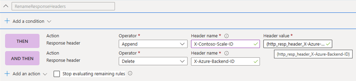 For example, you can replace the response header X-Azure-Backend-ID with a brand-specific header X-Contoso-Scale-ID.