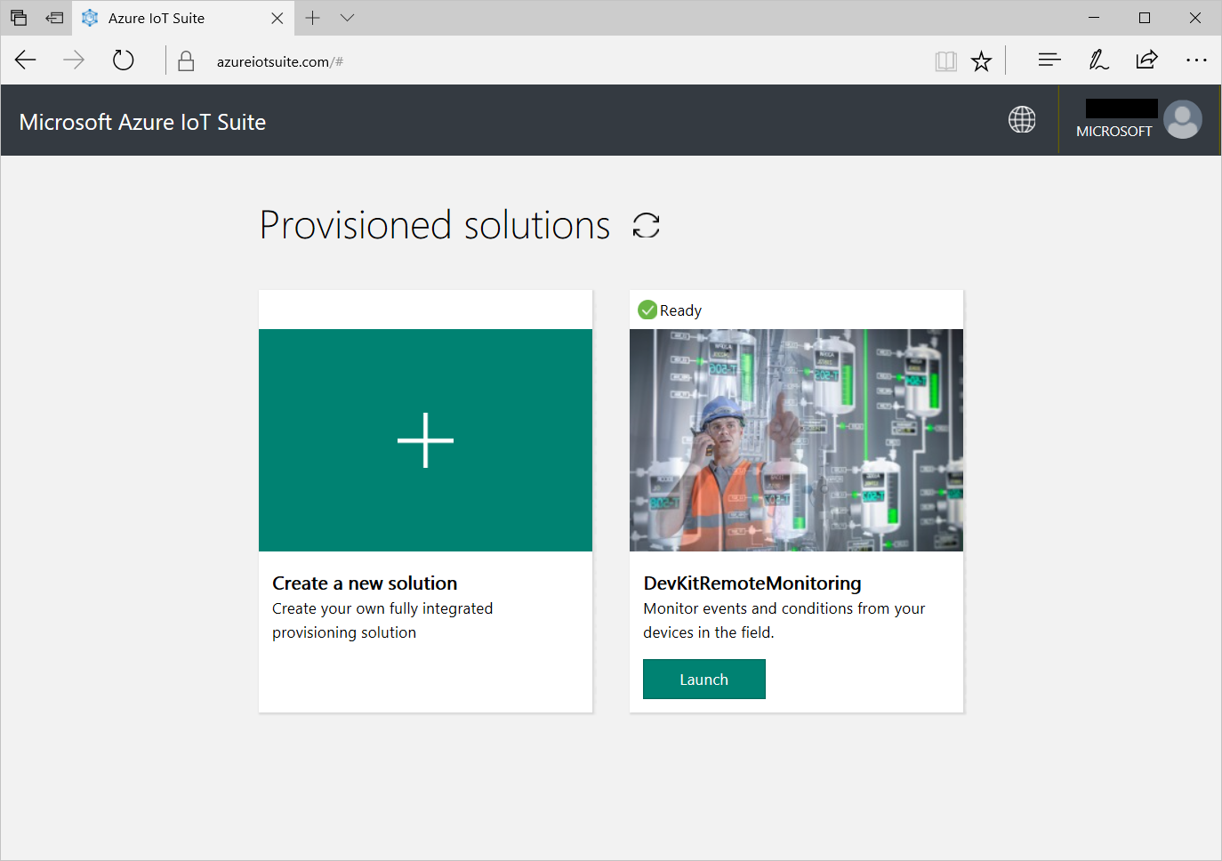 Go to Azure IoT solution acclerators site and click Create a new solution.