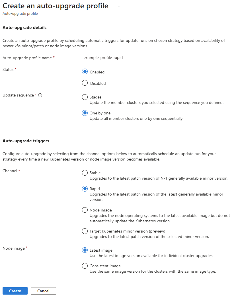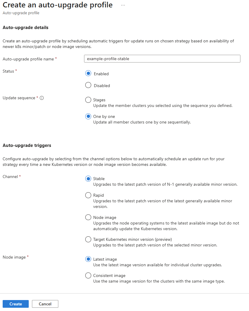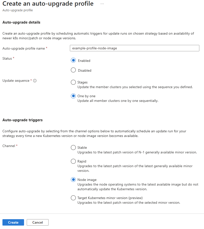 Select Create to create the auto-upgrade profile.