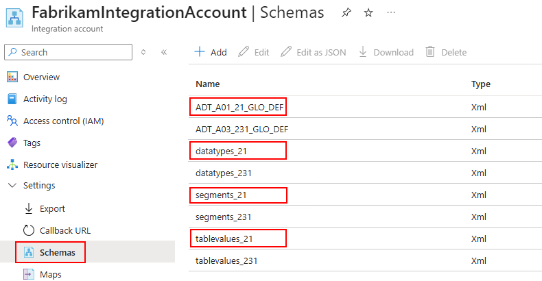 You must upload all these schemas to your integration account. However, unlike BizTalk Server, you don't need to upload the following common schemas:
