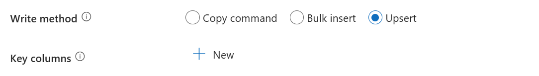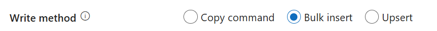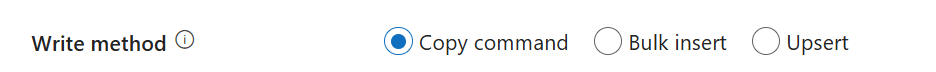 Select between Copy command, Bulk insert, and Upsert for the Write method.