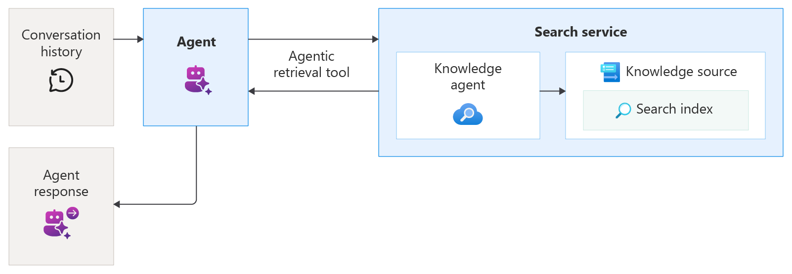 An end-to-end pipeline needs an orchestration mechanism for coordinating calls to the retriever and knowledge agent on Azure AI Search. You can use a tool for this task. The tool is configured in the AI agent and it calls the Azure AI Search knowledge retrieval client and sends back responses that drive the conversation with the user.