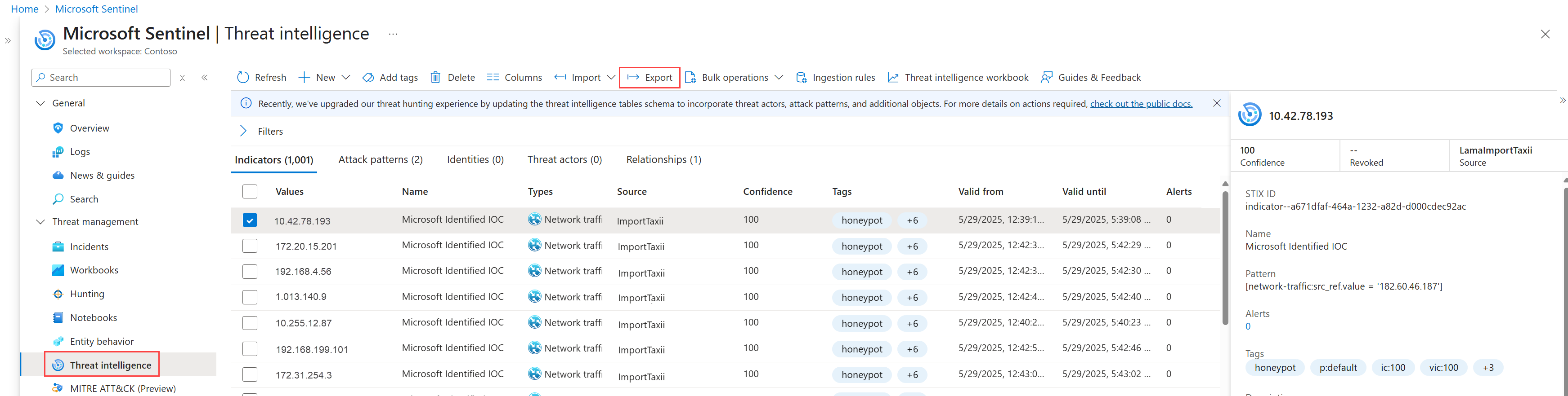 Microsoft Sentinel now ingests STIX objects and indicators into the new threat intelligence tables, ThreatIntelIndicators and ThreatIntelObjects. The new tables support the new STIX 2.1 schema, which lets you ingest and query various threat intelligence objects, including identity, attack-pattern, threat-actor, and relationship.