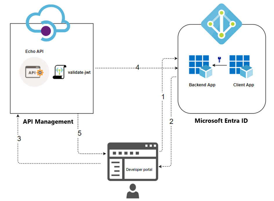 validate-jwt策略进行验证。 对于Microsoft Entra ID提供程序,API 管理还提供validate-azure-ad-token策略。根据验证结果,开发人员会在开发人员门户中收到响应。