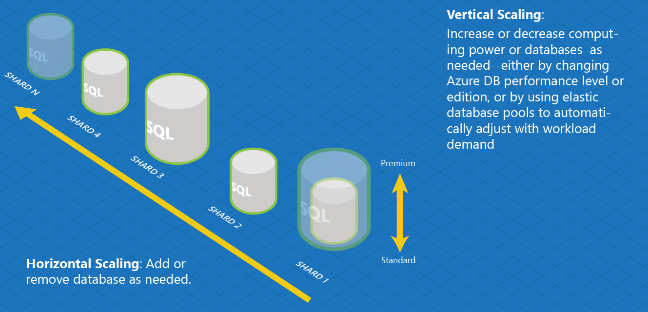 纵向缩放:向上(或向下)缩放单个分片的计算大小的行为。 例如,将分片从标准版更改为高级版(这会导致需要更多的计算资源)。