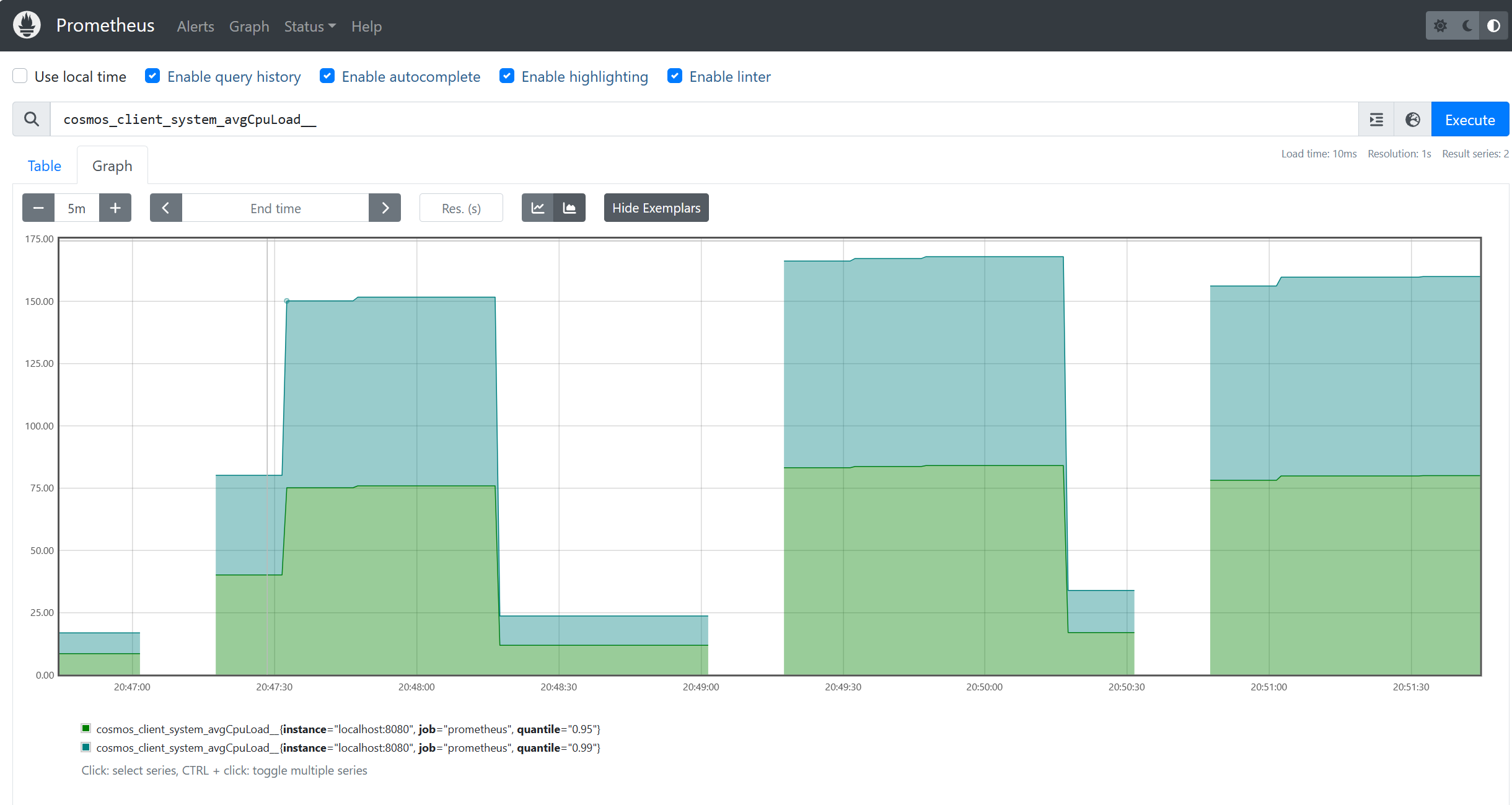 // - targets: ["localhost:9090", "localhost:8080"]