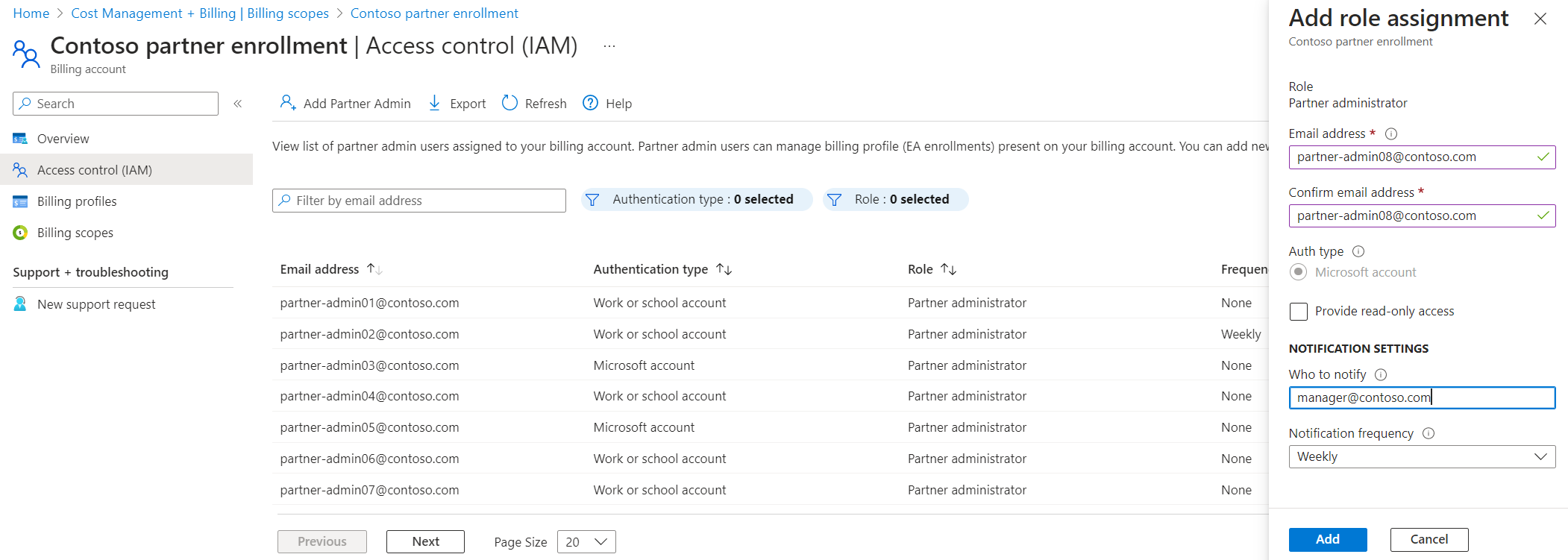 - 在页面顶部,选择“添加合作伙伴管理员”。