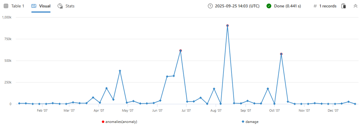 | extend anomalies=series_decompose_anomalies(damage)