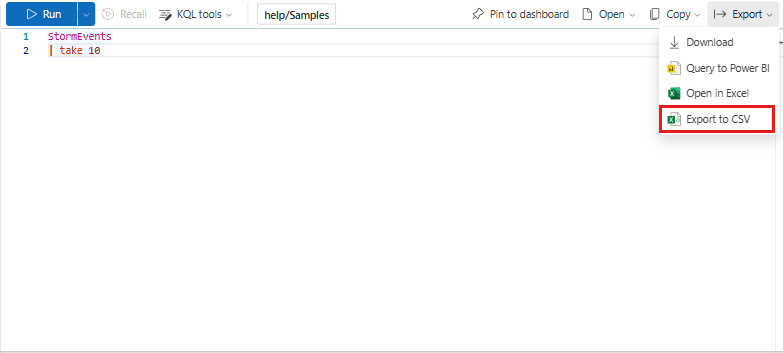 若要了解如何运行查询,请参阅快速入门:在 Azure 数据资源管理器 Web UI 中查询数据。