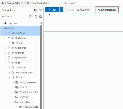使用查询选项卡后,可以同时处理多个查询,所有这些查询都有自己的查询上下文。 使用查询选项卡可以在不同的数据库和群集之间切换,而不会丢失工作结果。 若要重命名查询选项卡,请双击选项卡标题或选择选项卡上的铅笔图标。若要获取所有现有选项卡的综合视图,请使用右上角的选项卡列表。