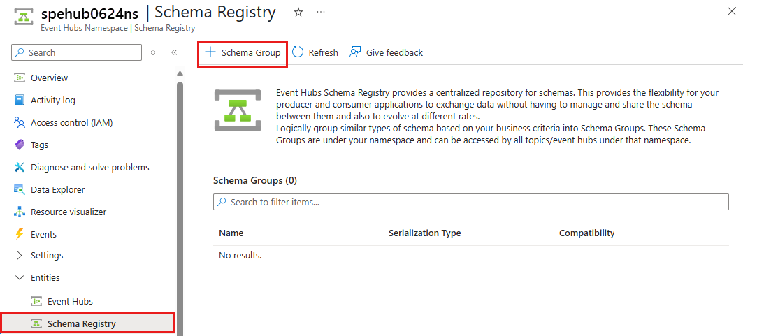 若要创建架构组,请选择“ + 架构组”。