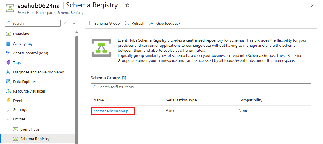 您可以看到该组的Schema Group页面。