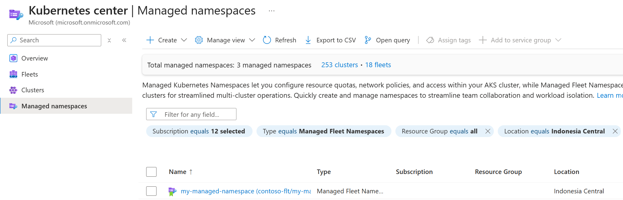 可以从 Fleet Manager 中或通过 Kubernetes 中心查找托管机群命名空间。
