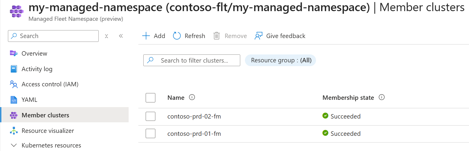 - 在 Azure 门户中,导航到 Azure Kubernetes 舰队管理器资源。