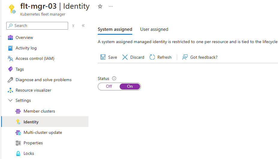 本文介绍如何在新的或现有的 Azure Kubernetes Fleet Manager 上启用以下类型的托管标识: