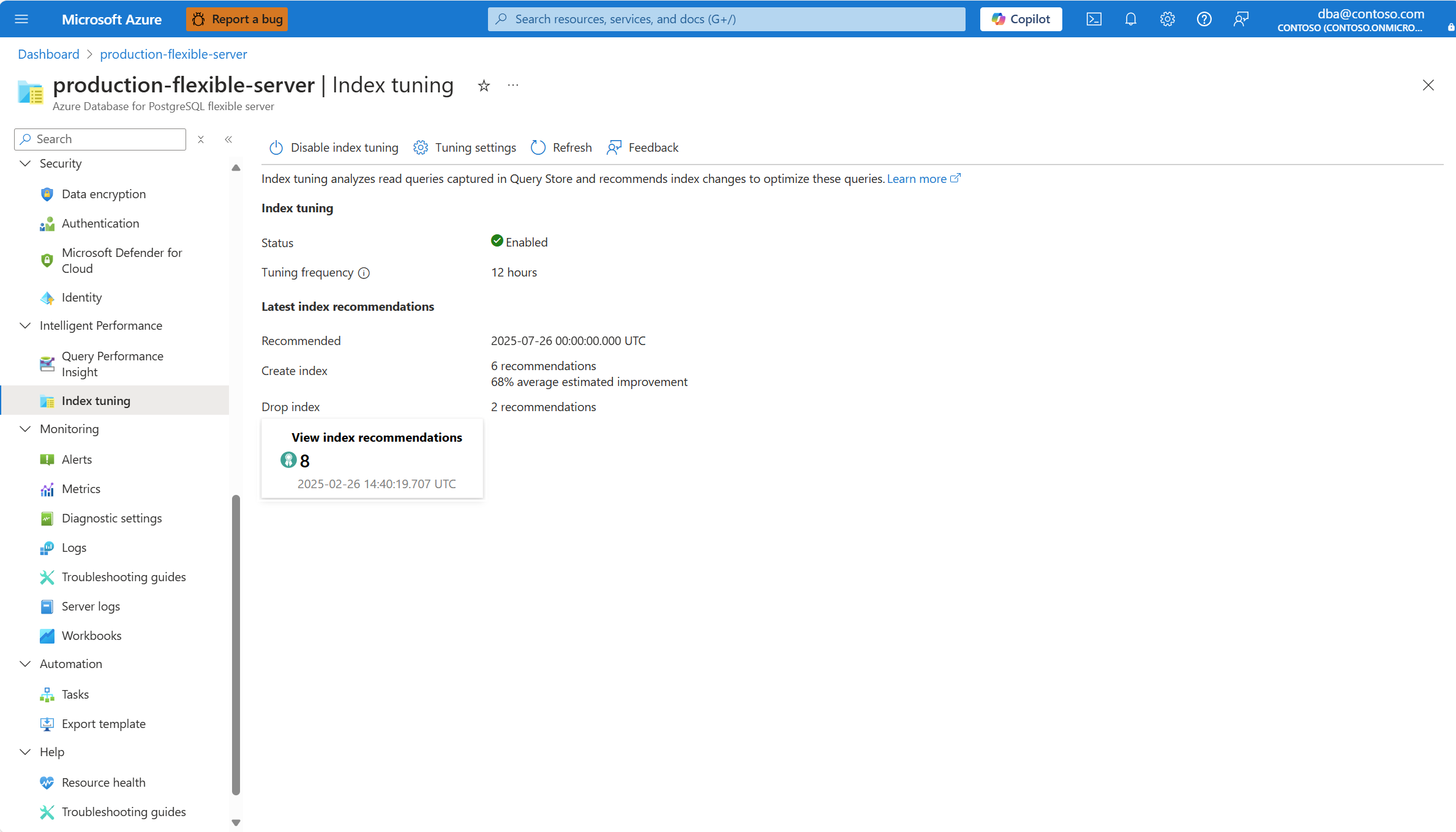 "id": "/subscriptions/<subscription_id>/resourceGroups/<resource_group>/providers/Microsoft.DBforPostgreSQL/flexibleServers/<server>/tuningOptions/index/recommendations/<recommendation_id>",