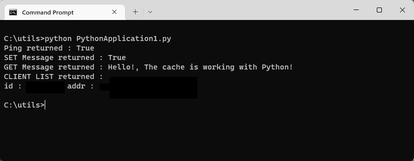 result = r.set("Message", "Hello, The cache is working with Python!")
