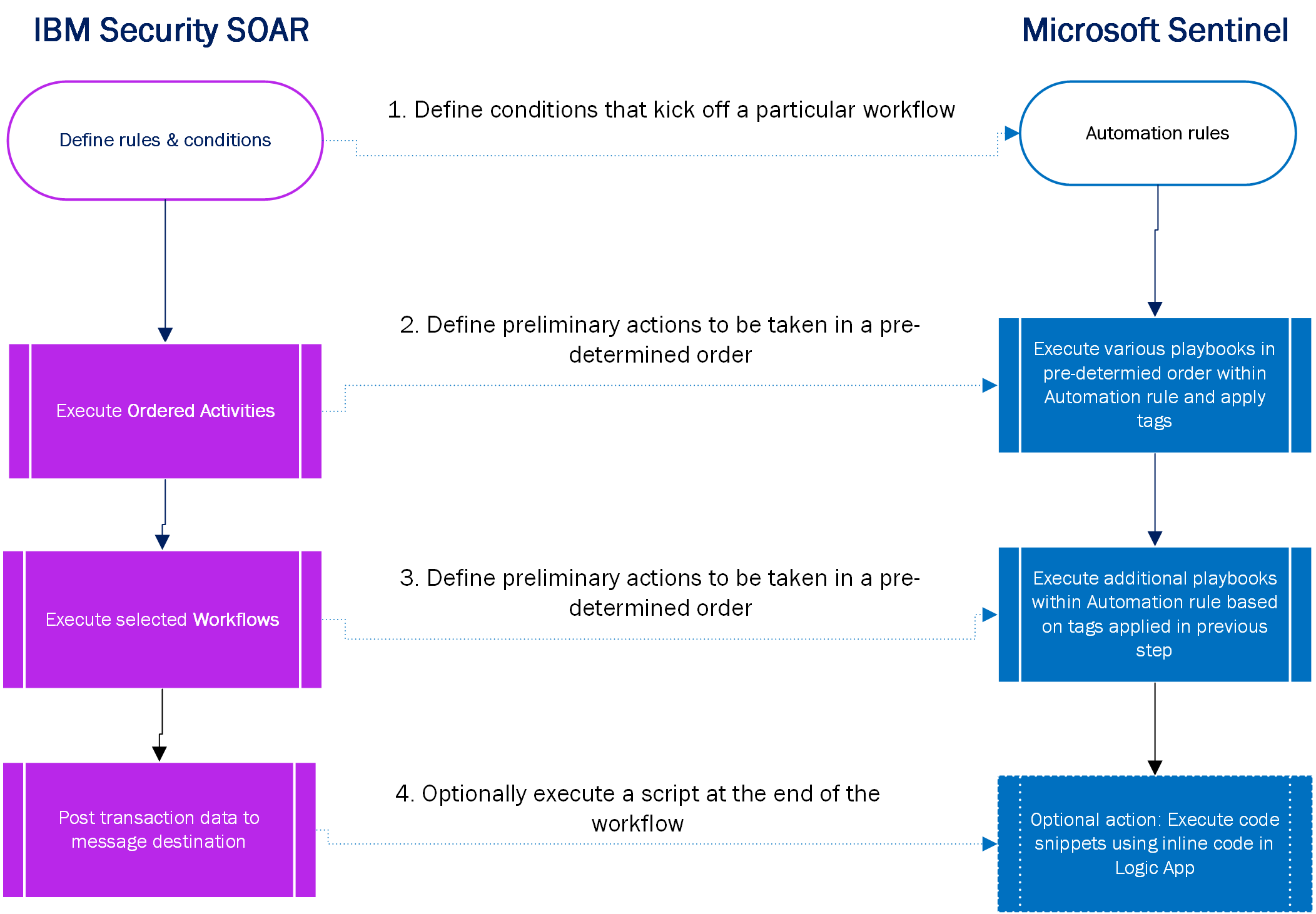 | 步骤(在图中) | IBM Security QRadar SOAR | Microsoft Sentinel |