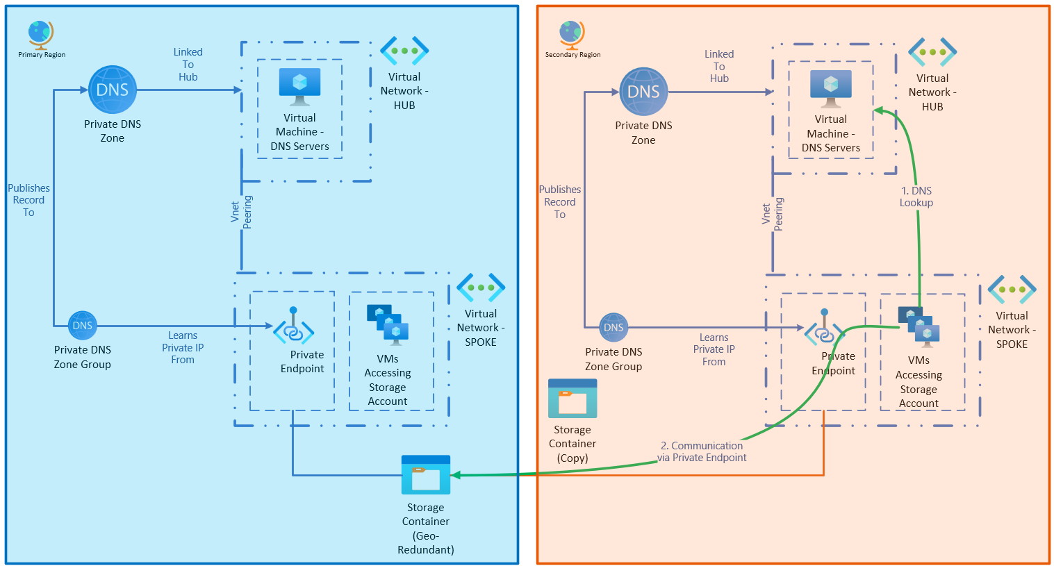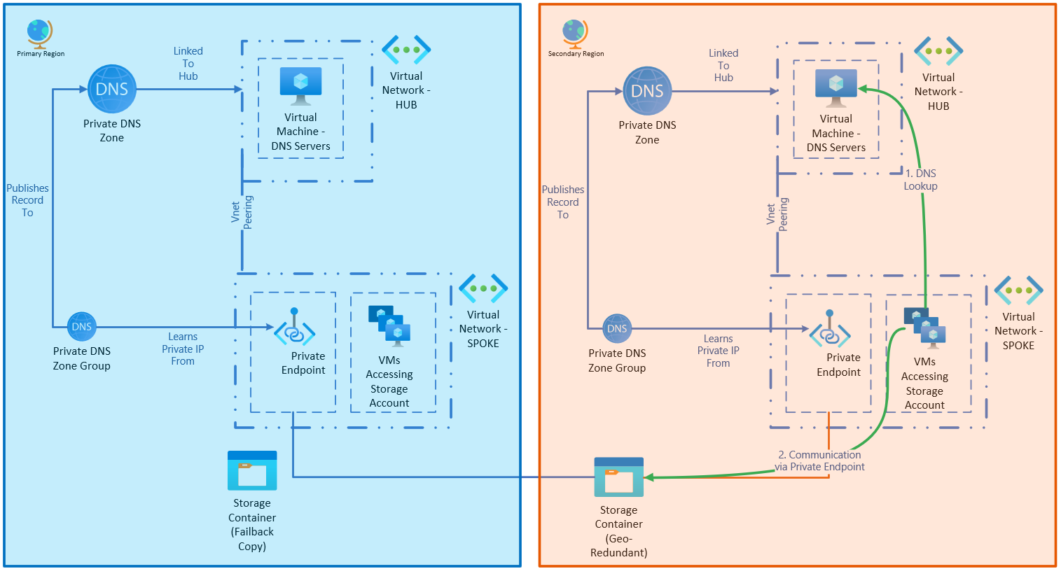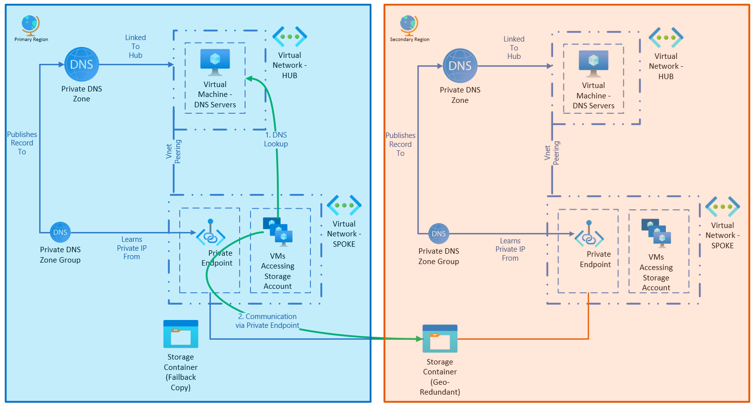 因此,无论尝试访问专用终结点的 VM 所在的区域是什么,都会提供一个可以访问存储 blob 的本地终结点,而不管存储帐户当前在哪个区域中运行。
