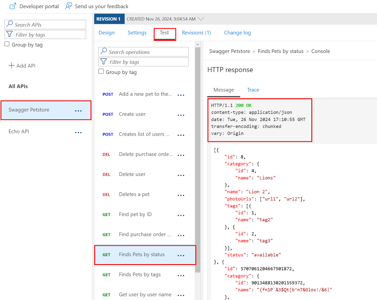 - 选择操作 GET Finds Pets by status,并可选择状态查询参数的其他值。