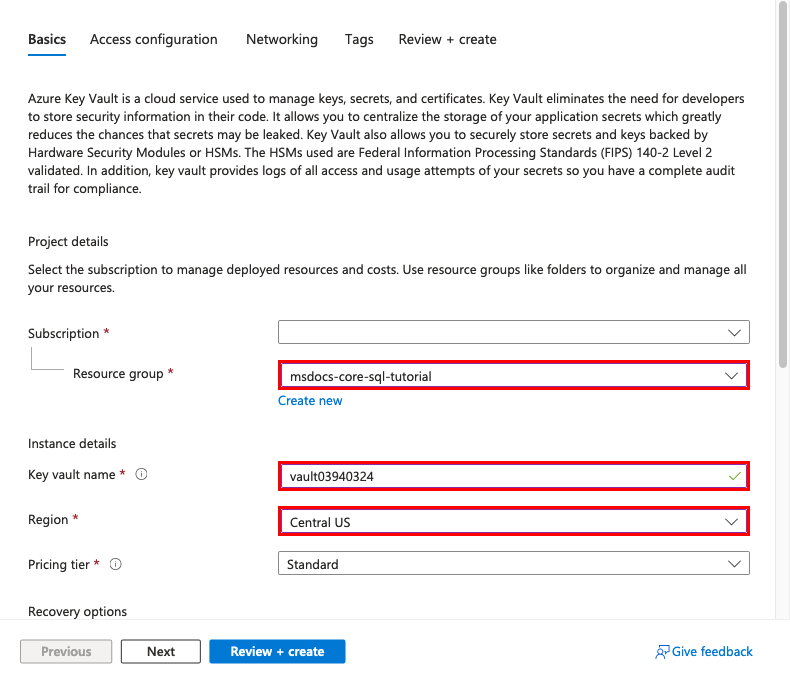 - 名称: msdocs-core-sql-XYZ。 将为你生成名为 msdocs-core-sql-XYZ_group 的资源组。