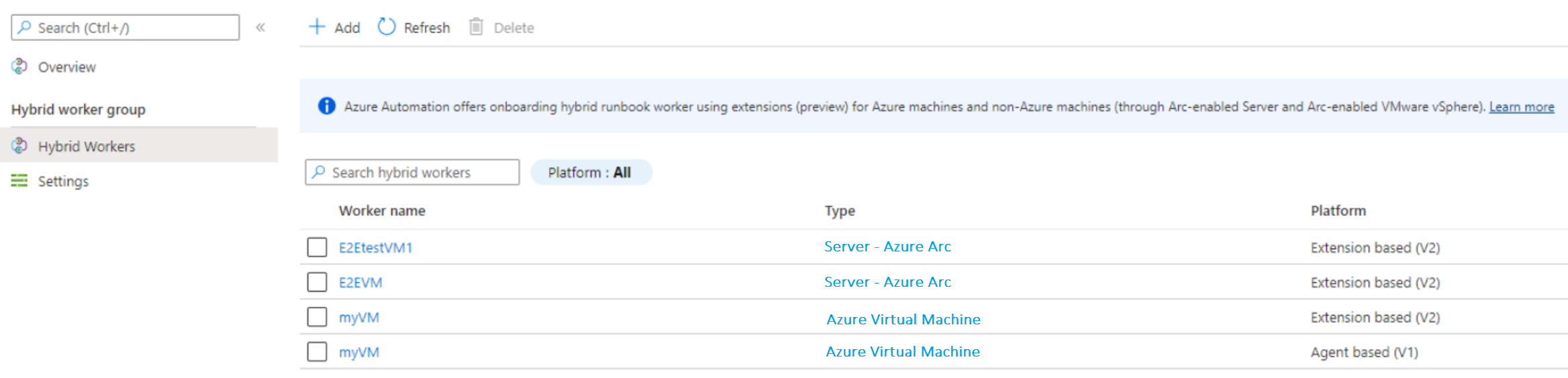 - Azure 自动化基于代理的用户混合 Runbook 辅助角色(Windows 和 Linux)已于 2024 年 8 月 31 日停用,不再受支持。 请按照有关如何从现有的基于代理的用户混合 Runbook 辅助角色迁移到基于扩展的混合辅助角色的指南进行操作。