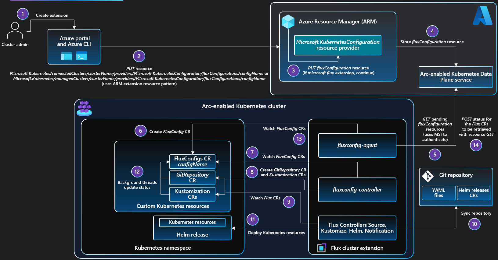 fluxConfigurations资源轮询 Kubernetes 配置数据平面服务。 - 使用配置信息在群集中创建或更新