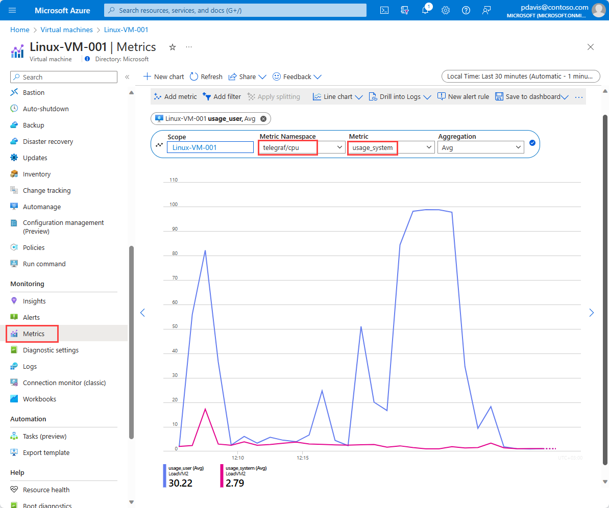 现在,代理会从每个指定的输入插件收集指标,然后将它们发到 Azure Monitor。