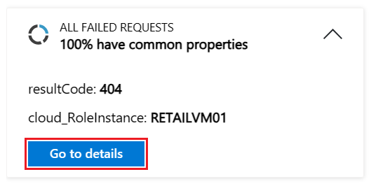 每个窗格部分都包含一个选项,用于在展开的视图中查看详细信息,包括故障、性能和有关失败的请求和依赖项的详细信息。