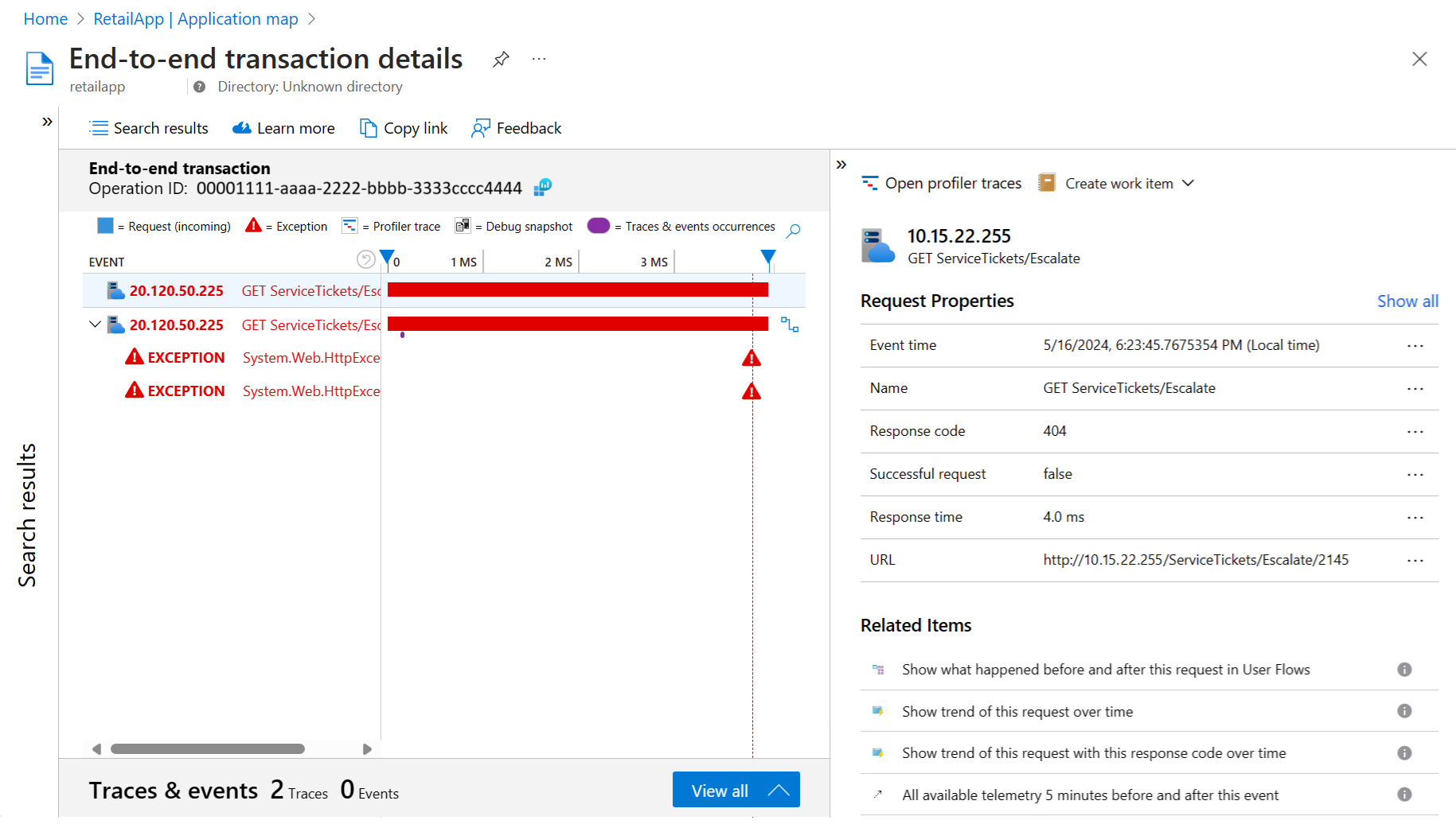 当云角色名称显示 Web 前端中的某个位置有问题,并且你正在 Web 前端上运行多个负载均衡的服务器时,使用云角色实例可能会有所帮助。 通过应用程序映射,可以使用 Kusto 查询查看有关组件节点的更深入的信息。 可以调查节点以查看有关特定云角色实例的详细信息。 此方法可帮助你确定问题是影响所有 Web 前端服务器还是仅影响特定实例。