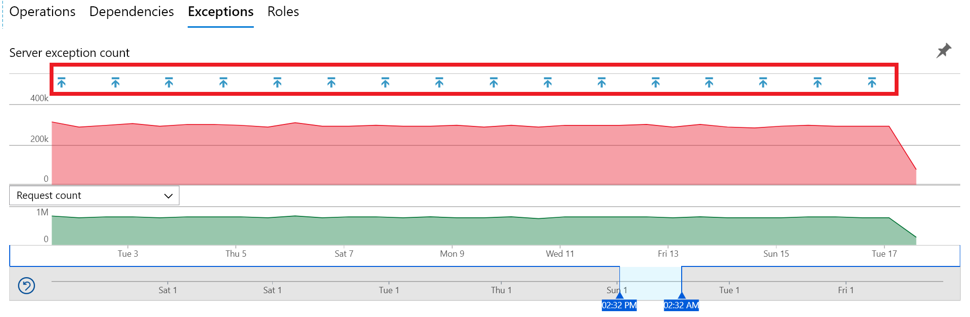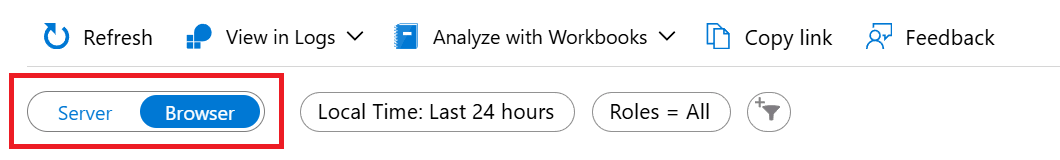 可以从“ 角色筛选器” 菜单中选择要查看的服务(云角色名称)或计算机/容器(云角色实例)。 此操作允许在应用程序的特定部分识别问题或性能趋势。