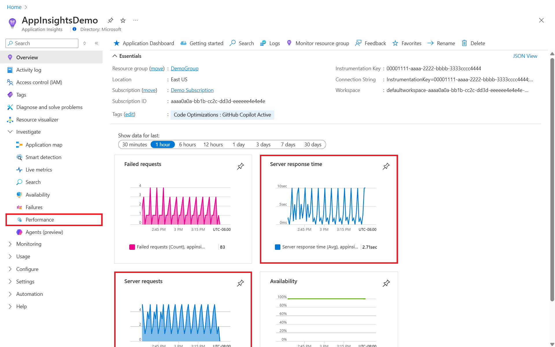 - 详细了解如何使用 可用性视图 设置定期测试,以监视应用程序的可用性和响应能力。