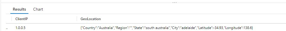 | extend GeoLocation = geo_location("1.0.0.5")