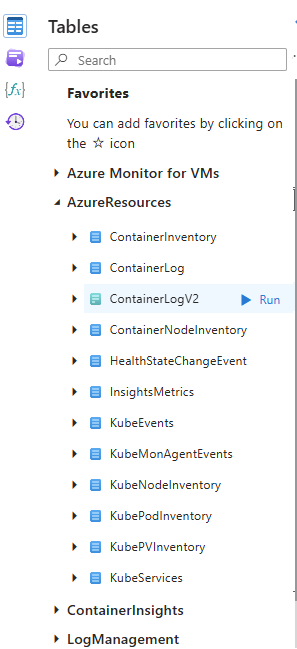在 Azure 门户中,选择“监视”“日志”>“表”。