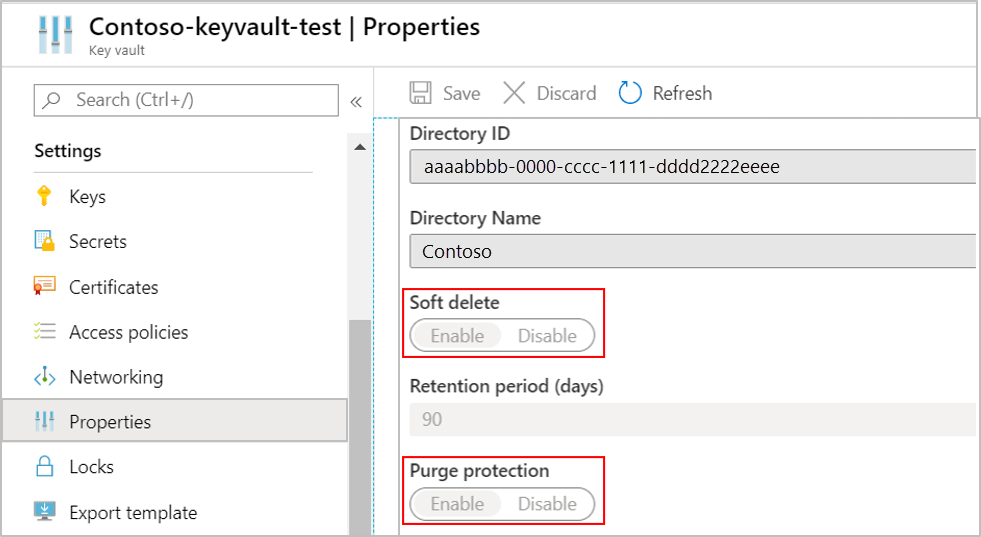 必须将Azure Key Vault配置为可恢复。 默认情况下未启用这些属性,应使用 CLI 或 PowerShell 对其进行配置: