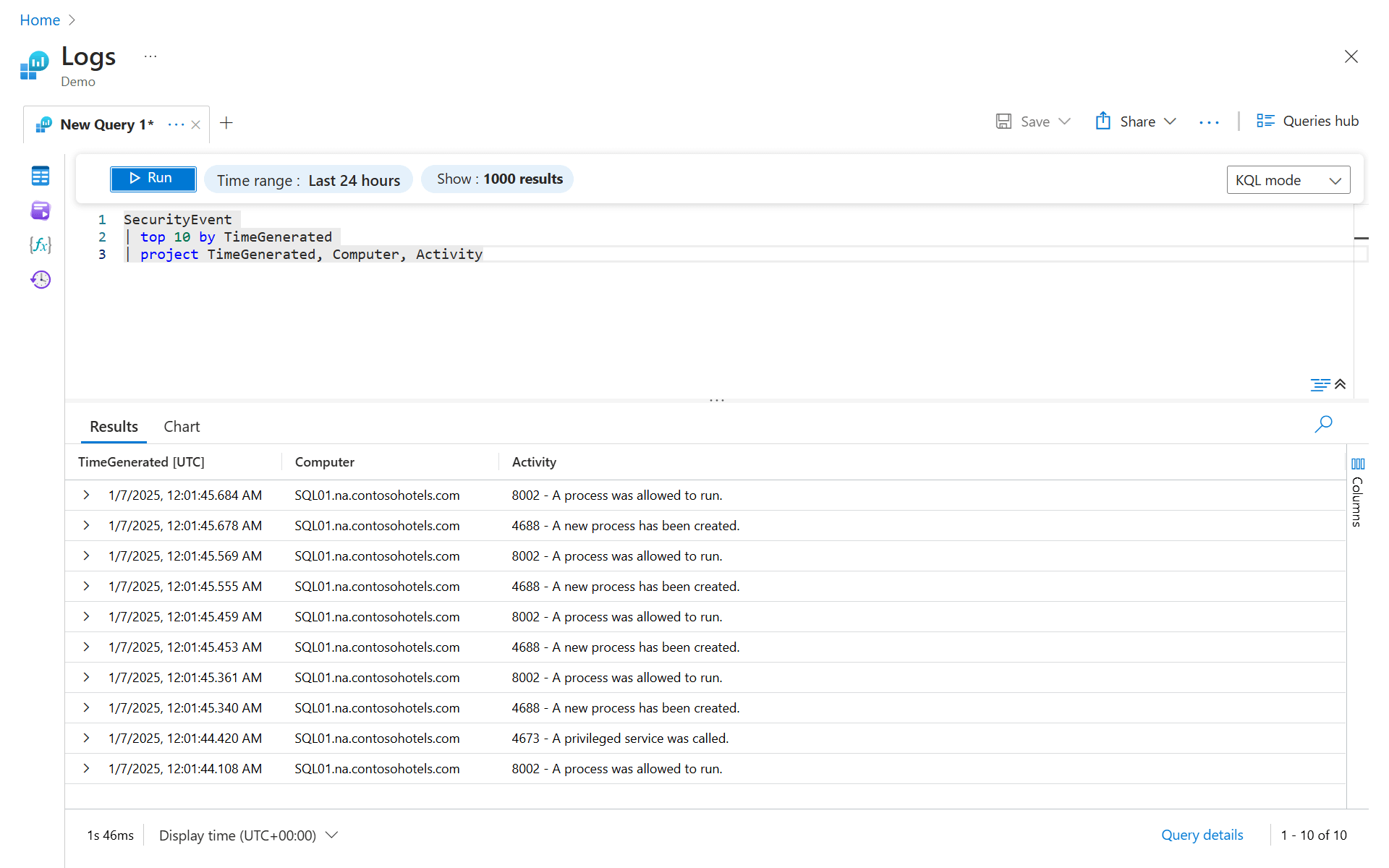 | top 10 by TimeGenerated